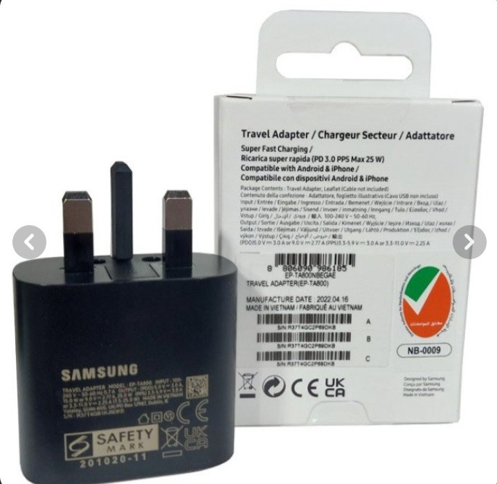 کلگی شارژر سوپر فست اورجینال EP_TA800 سامسونگ 25WPD Adapter USB-C (اصلی) به همراه کابل مجزا